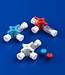 - Elke opening heeft een beschermdop of Luer-Lock dop.