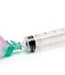 De naald heeft een spuitaansluiting met kleurgecodeerde hub voor bloedafname en injectie in de huid.